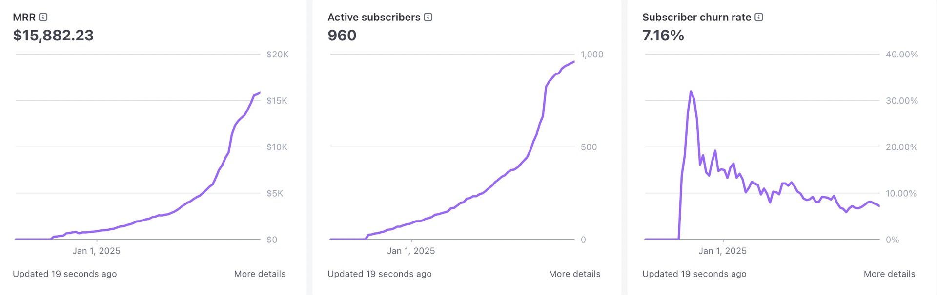 It’s growing organically at 14% MoM. Users do the marketing by sharing screenshots of their analytics. All I have to do is build features they need and love — basically my dream product.